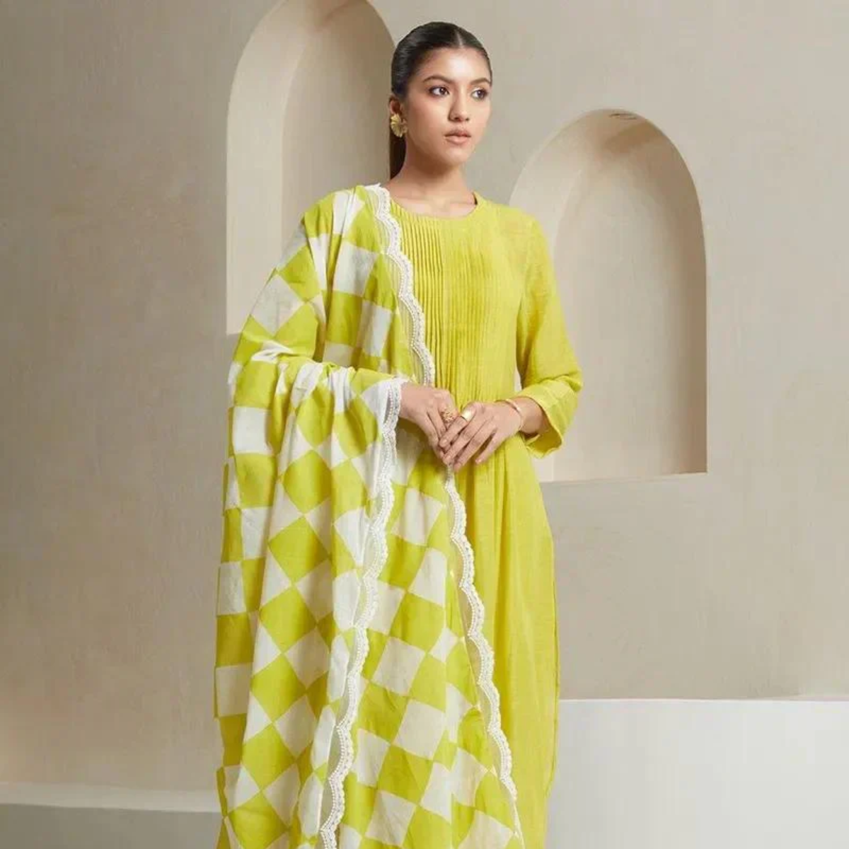 Rajasthani Mirror Work Yellow Kurti Dupatta Set