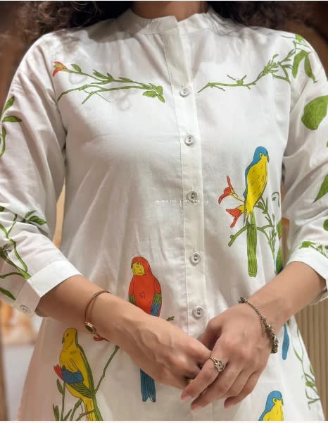 Elegant Pure Cotton Women'S Kurta Handcrafted Bird & Botanical Design