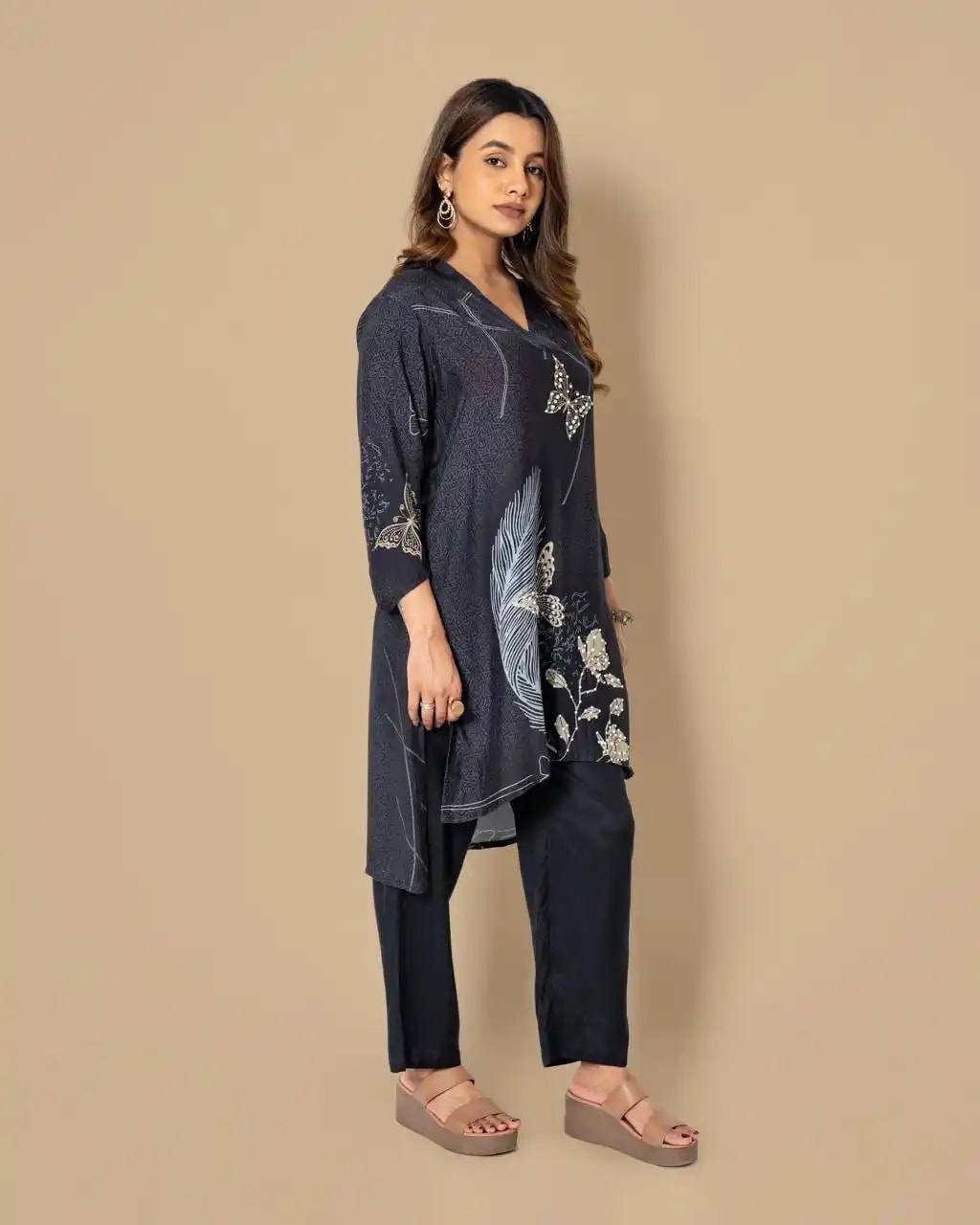 Sunset Stroll Premium Cotton Embroidered Kurti Palazzo Co-Ord Set