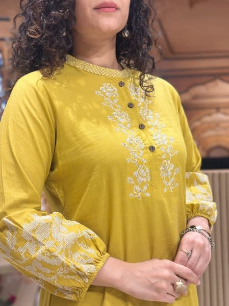 Premium Cotton Embroidery Kurta Set | Pintex Work & Utility Palazzo