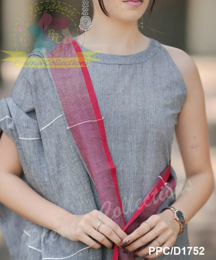 Elegant Handloom Embroidered Kurti Set With Linen Dupatta Pink