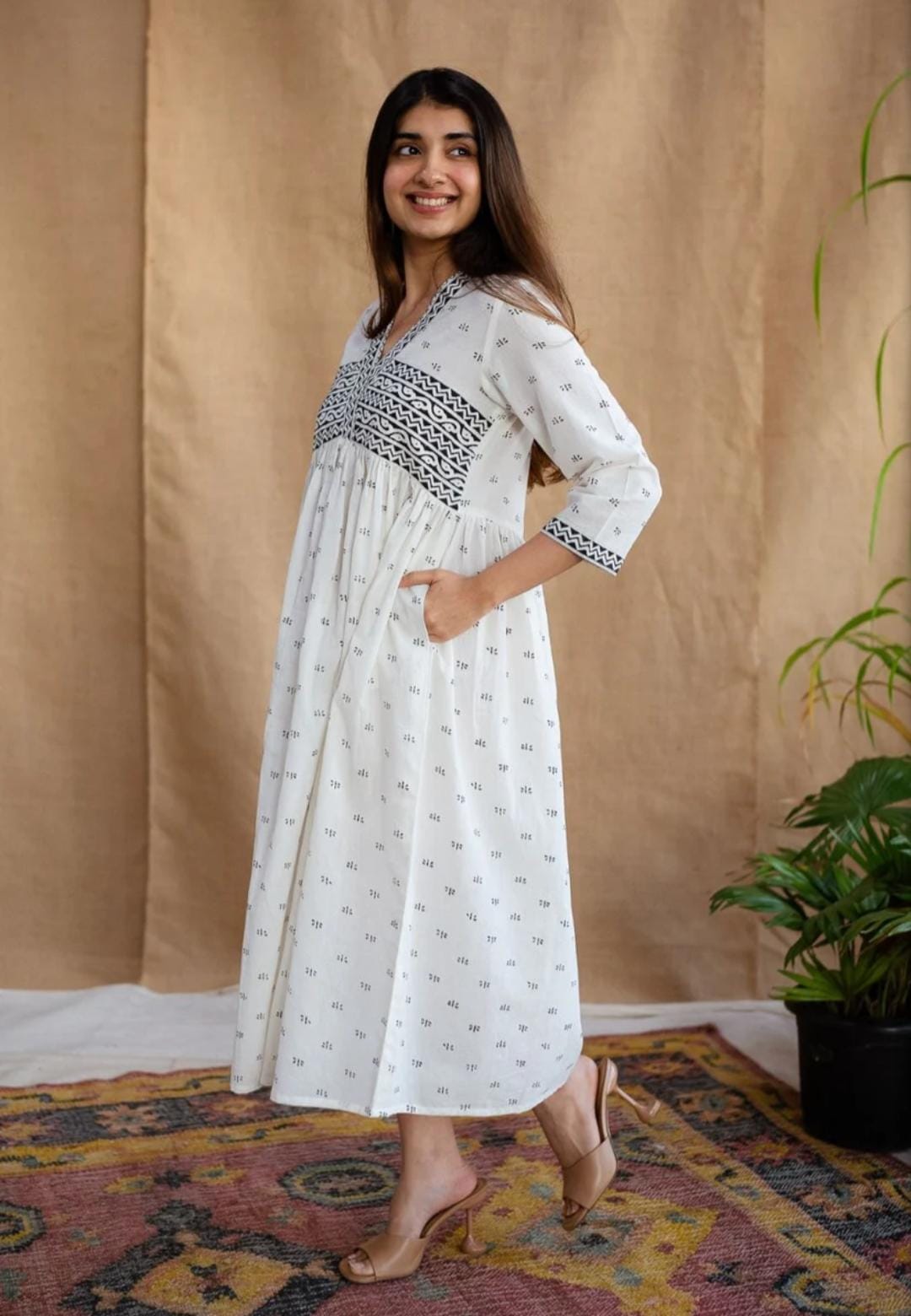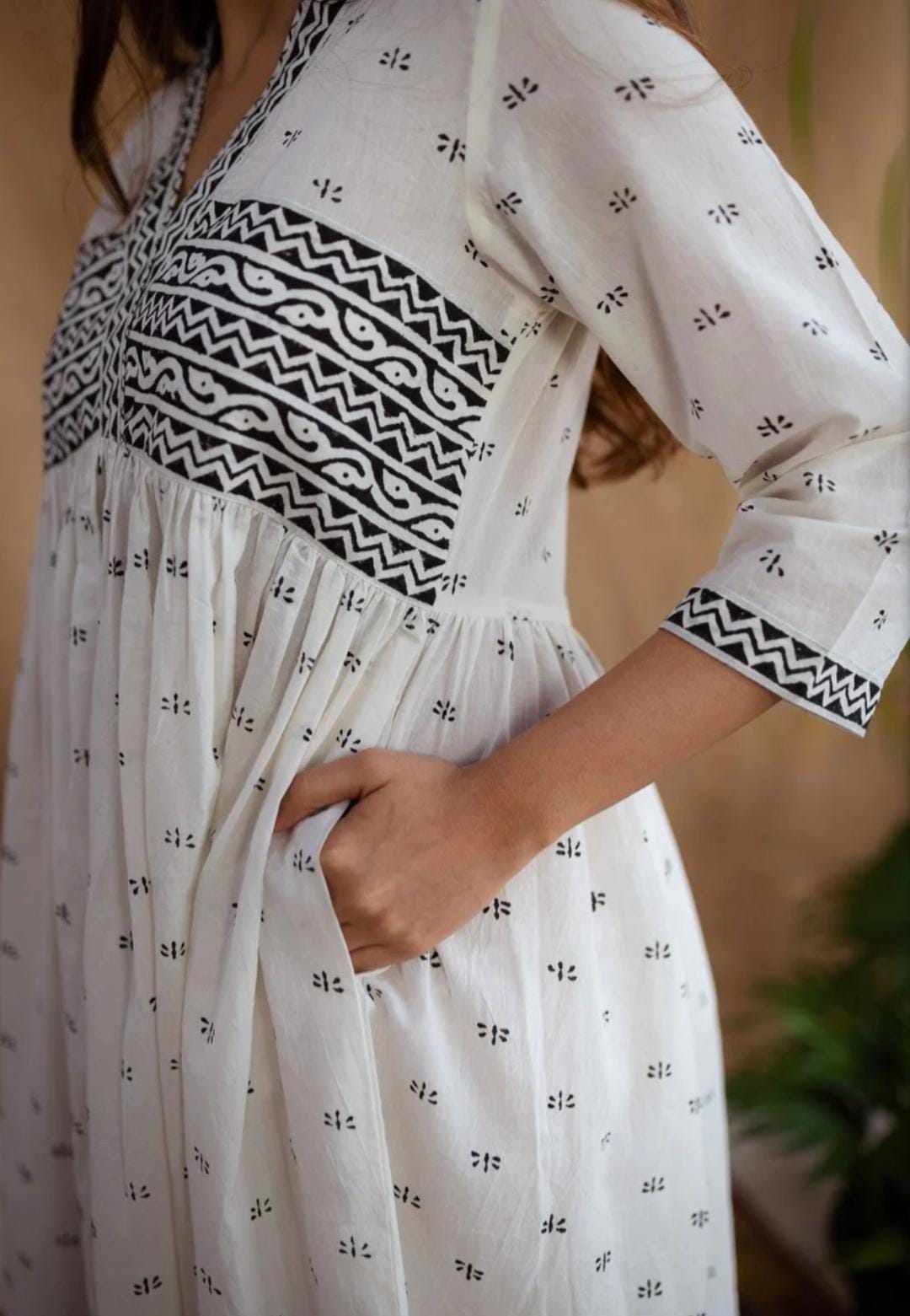 Cream Khadi Cotton Kurti Set With Dupatta For Women
