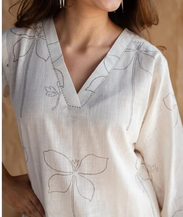 Sunset Stroll Premium Cotton Embroidered Kurti Palazzo Co-Ord Set