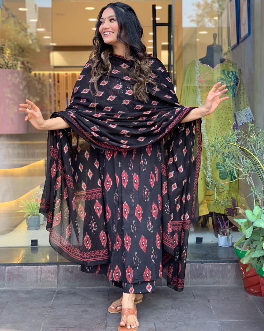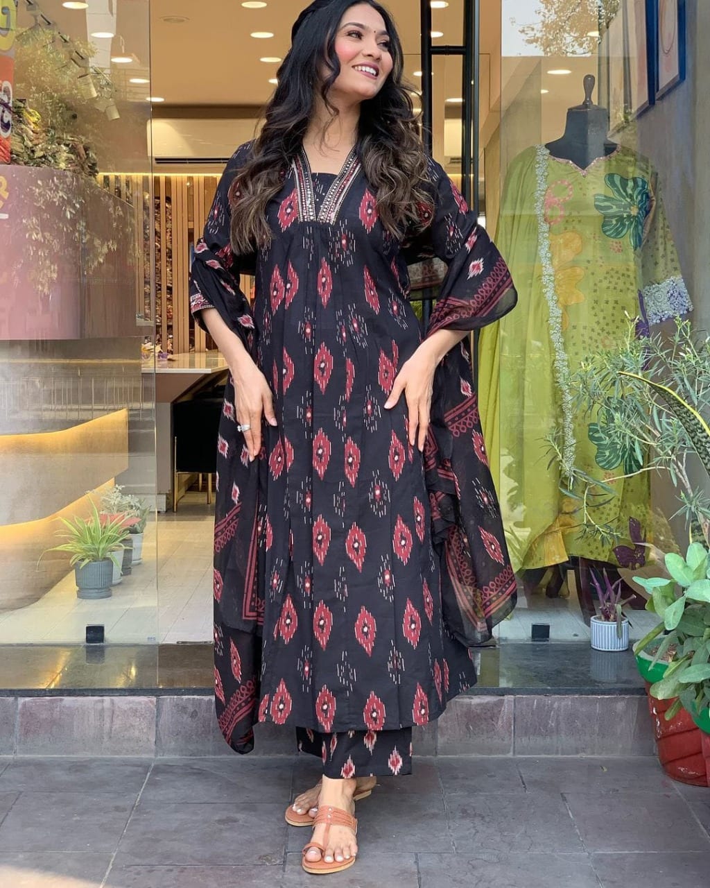 Royal Libas New Launch: Elegant Pure Cotton Ikkat Suit Set With Intricate Embroidery