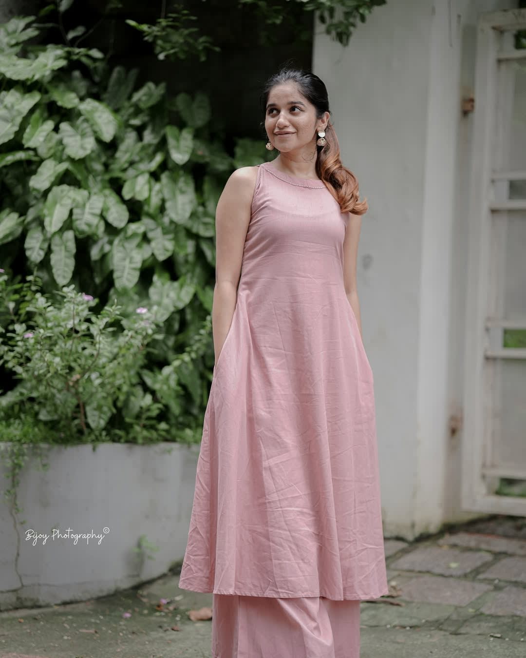 Elegant Handloom Embroidered Kurti Set With Linen Dupatta Pink